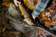 Nomad Nets are constructed with carbon fiber/fiberglass composite material. The result is a very lightweight and durable net. Nomad Nets are built for the conditions that prevail where great fishing exists; they are waterproof, UV protected, and float like a cork. All Nomad Nets come standard with a rubber bag. The Nomad Emerger net was designed to work with both packs and vests. The longer handle can easily tuck behind a pack but is not too long to hang off the back of a vest.
